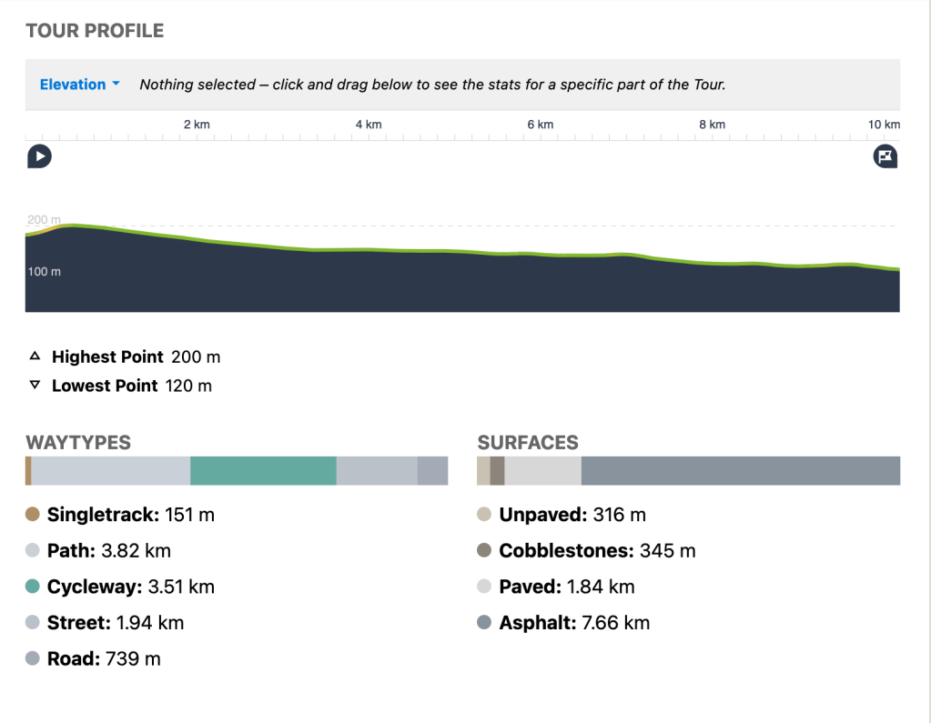 500m through a 30km/h zone , then bike path, farm roads, another 30 km/h stretch (one way, but we’re allowed to ride both ways) and then it’s cycleways and bike paths all the way.