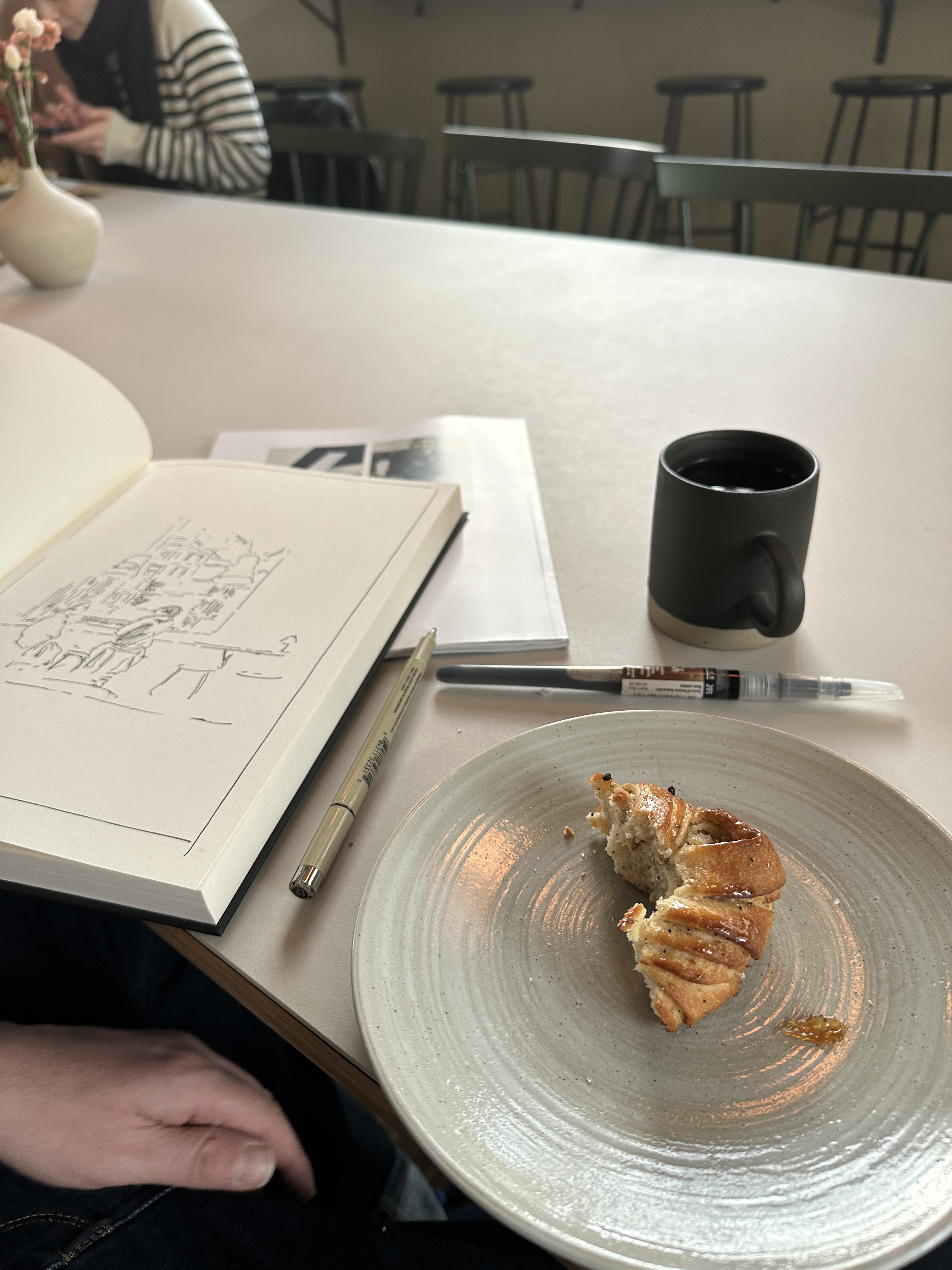 And a cardamom bun fan who likes it there so much that he’s sketching the atmosphere to take with him.
