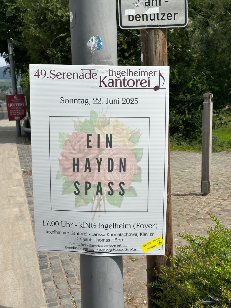 Here’s a poster for a Haydn (benefit for a good cause, make a donation)concert in Ingelheim and phonetically it *really* says: