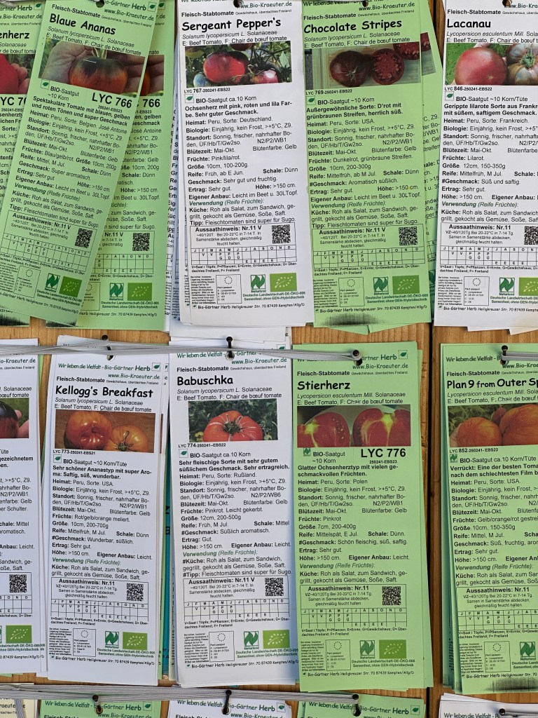 €3.50 for (IIRC) 12 seeds and he must have over 200 varieties of beef/coeur de boeuf/cuore de bui/Ochsenherz tomatoes alone…
