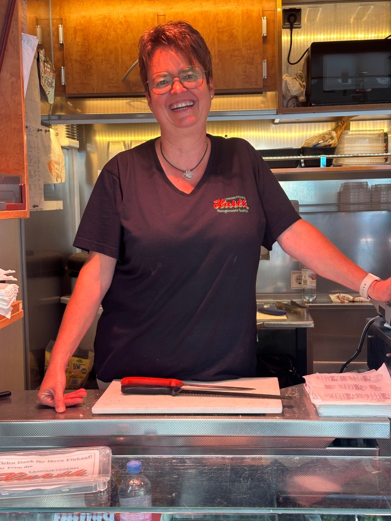 Still the same excellent Fleischwurst, still the same beaming smile, still the same “Hi John” from a distance, still the same “Jooooohn, can you help us with a translation?” when a couple of young Chinese women turn up today and need to have the cultural significance of Weck, Worscht un Woi explained.