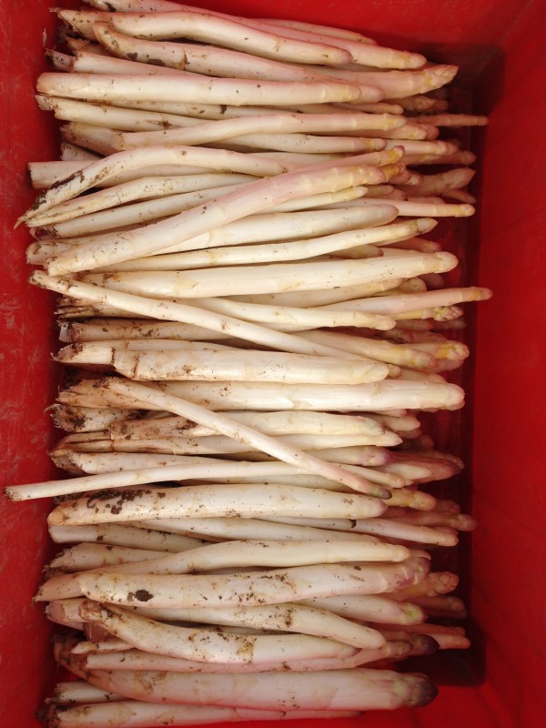 This is the asparageous equivalent of battery chickens – cover your asparagus mounds with plastic (black on one side to warm them up, white to cool them down) and sell…