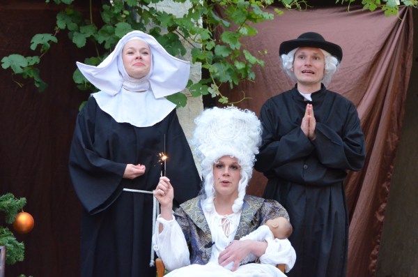 “Well, if Putin can orchestrate the Winter Olympics in sub-tropical Sochi,, I don’t see any paradox at all…” said the lead actor/producer/ticket collector of Zettels Theatre. Winery courtyard in the…