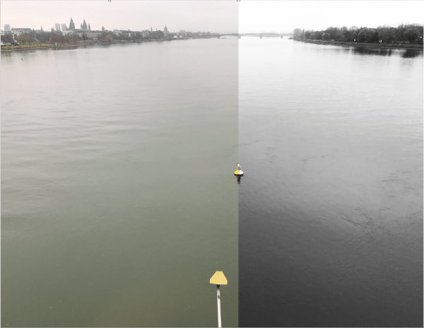 On the left bank of the Rhine, we have Mainz – cathedral domes and church spires and stuff. On the other side of the river, we have Mainz-Kastel. Which gets…