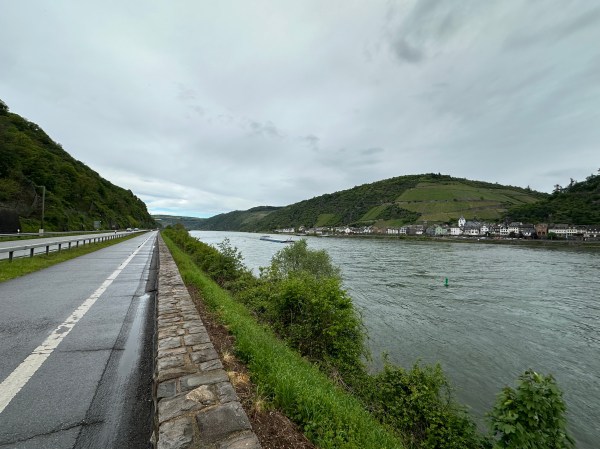 On the 100km bike path between Mainz and Koblenz. 4.5 hours. Non-electric. Whenever I see a sliver of blue in the distance of a grey sky, I always think affectionately…