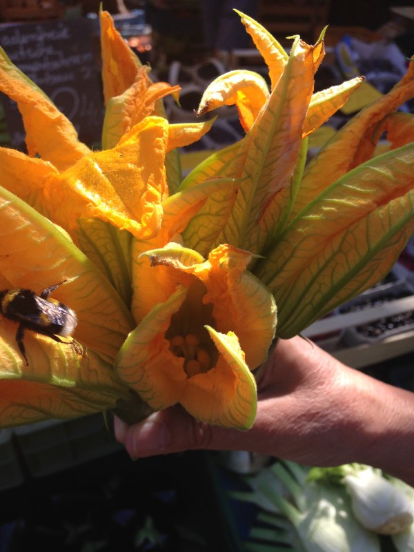 Bought 6 zucchini flowers on the market on Friday (€4, dip them in tempura batter, fry them in hot oil until they’re crisp, serve with pureed roasted red peppers) and…