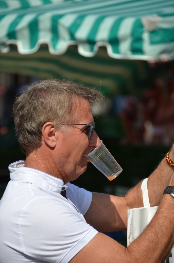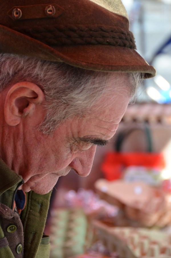 Werner Scholles, star of Mainz’s market. Accompanied for ages by Moritz, his Obixto cockerel, and bit sad these days at its passing. He’s been on TV heaps, spreading his jokes…