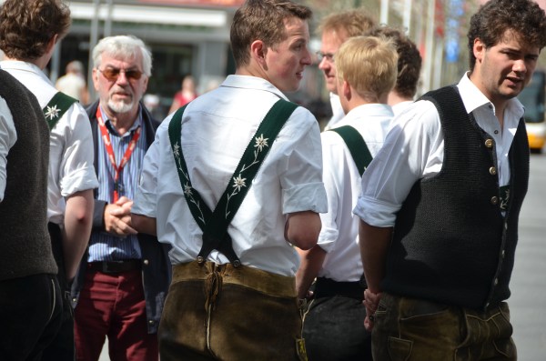 People in Lederhosen and braces embroidered with Edelweiss on the market the other day. Definitely not locals…