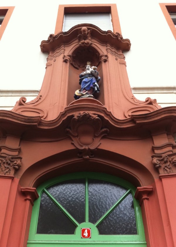 Madonna on high with cherubims, seraphims and twiddly bits at Jakobsbergstrasse 4.