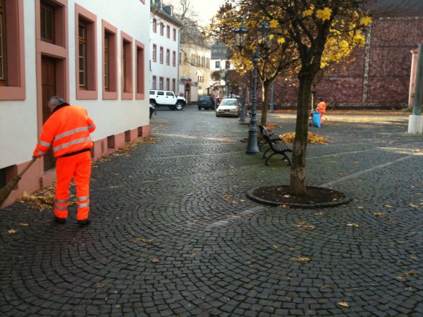 > .. Halloween’s alive and thriving in Mainz. A veritable coven at work at one of the flower stands today. Probably making brooms for a quick getaway….