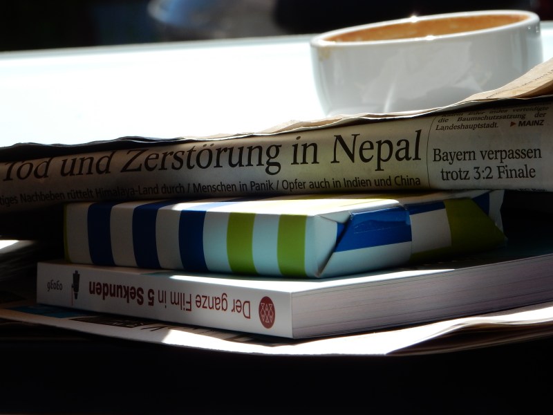Aftershock in Nepal, reported by the Allgemeine Zeitung, a gift and “The entire film in 5 seconds”, a graphic depiction of the decisive moments of 150 films. Seen at Café…