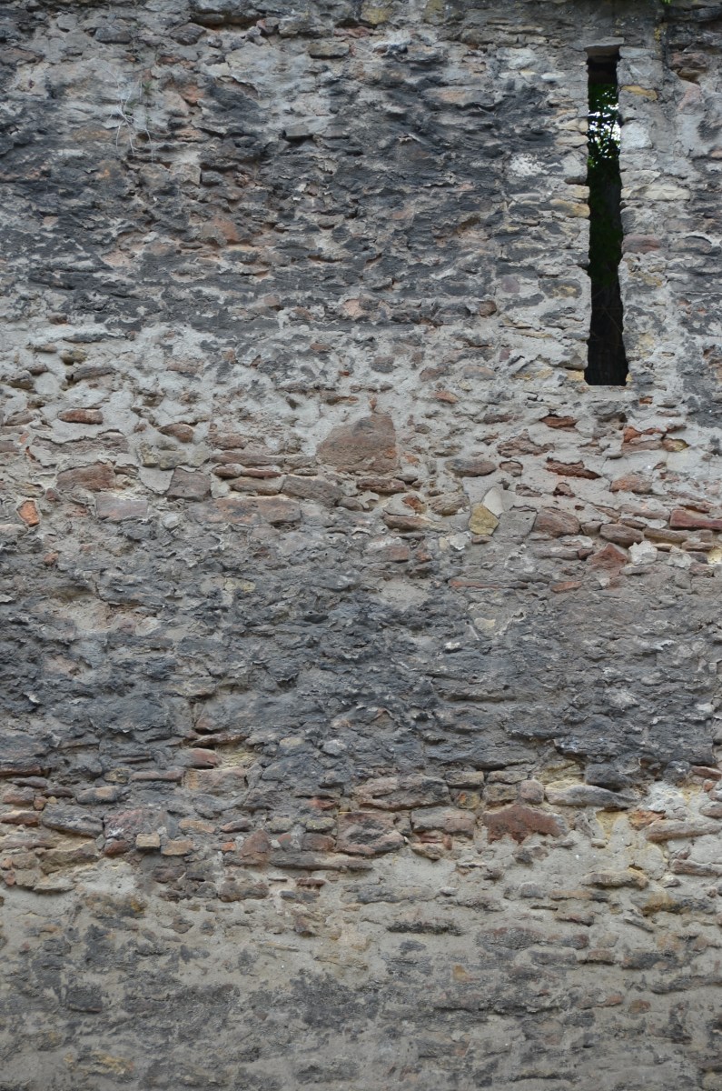 An embrasure (aka loophole, slit, arrowslit, balistraria, barbican, crenel) in the remants of the city wall on the Rheinstrasse.