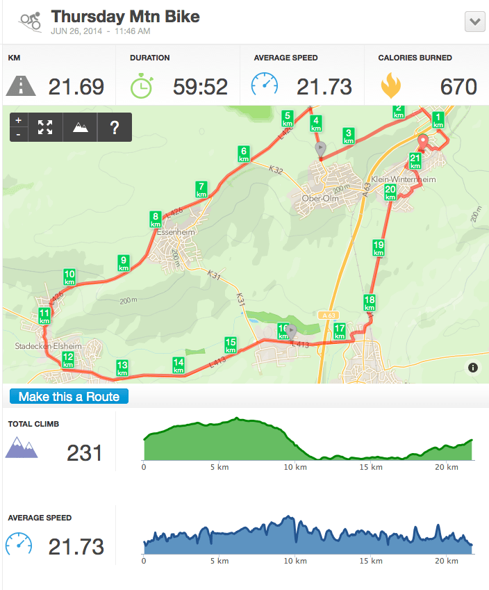 At about the 19km mark of today’s ride, I was zipping up a fairly easy rise (about 4%) on ther bike path at a good clip (18km/h) and caught up…