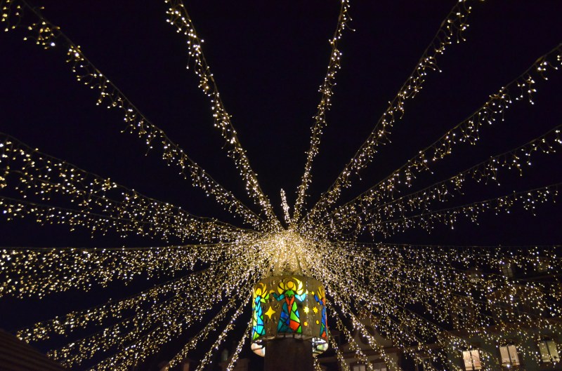 …that the otherwise bankrupt city of Mainz raided the piggy bank and came up with enough small change to set up a Christmas tree in front of the Staatstheater. And…
