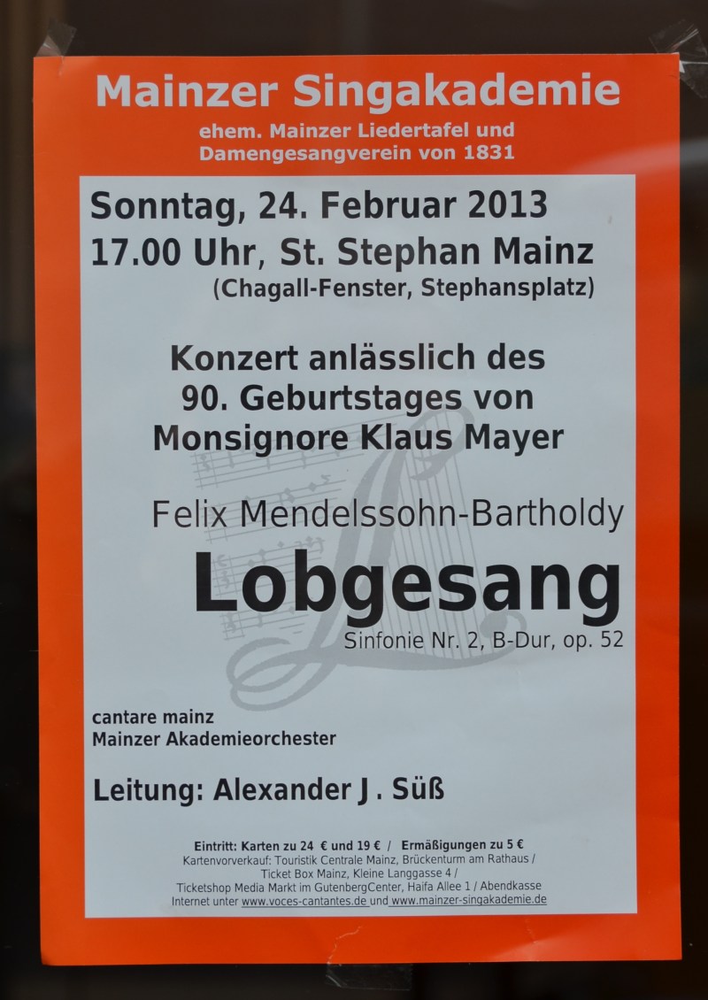 Monsignor Klaus Mayer, my luncheon companion of the other day, is having his 90th birthday celebrated for him in style with a concert in his honour in the Stephanskirche this…