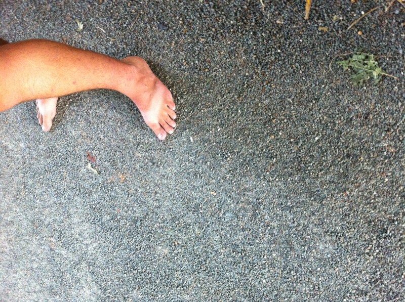 Footwear is frequently jandals (as documented by the pale chevron on this chappy’s feet). Or nothing at all.