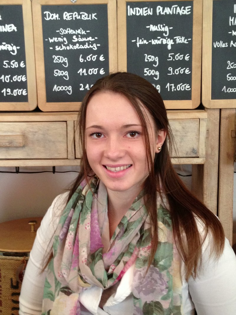 Caffea Moguntia Caffee Monguntia Moguntia Kaffeerösterei changes its name so often, I have difficulty keeping up. The same with their recent intern Svenya, pictured here. If we hadn’t drifted by…