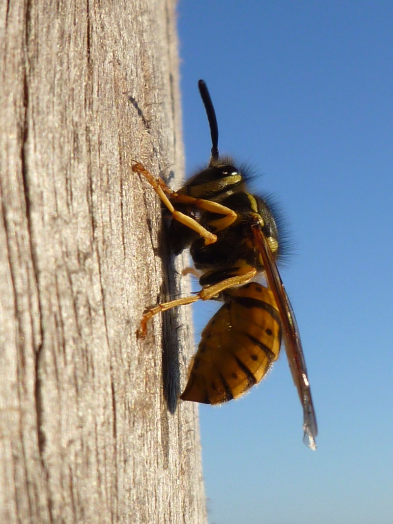…. before this chappy (paper wasp, methinks) finally works his way though the roof support and the whole shebang comes crashing down