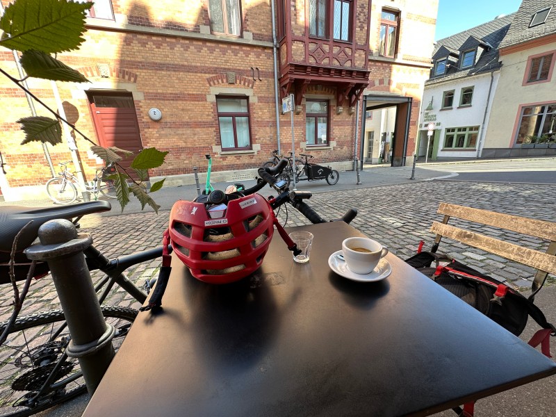 Jan rides to Mayence From Wiesbaden to make me Excellent coffee