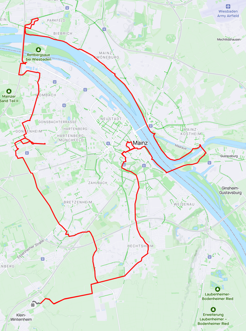 ..what’s not to like? Winterhafen in Mainz, cathedral in the distance, nice apartments to port and the Rhine to starboard. 10km into an 80km ride along the Main river towards…