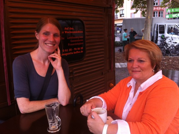 ….at Caffee Moguntia’s Tin Shed On Wheels on the market in Mainz Fate brought us together. Just a bit too late, IMHO. We’d got back from Boston at 5:15…