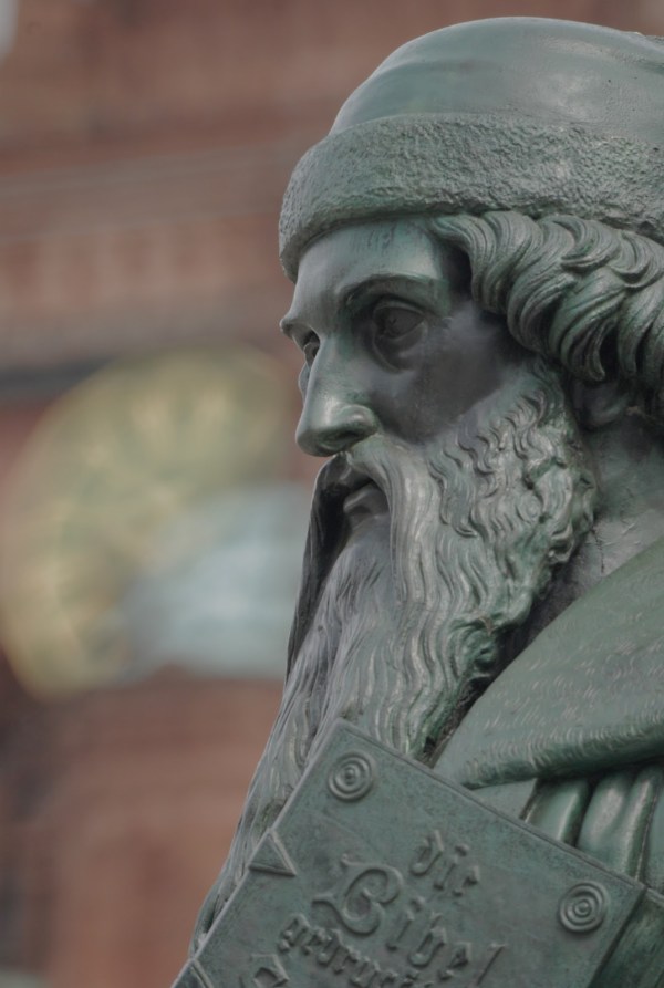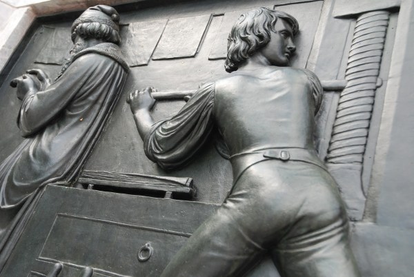 > Said the guy on the market. “He’s thinking “If I take another step, I’m going to fall off the pinth….”” Johannes Gutenberg living dangerously.