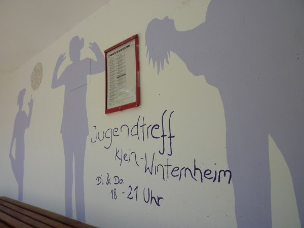 > This is cool. Local kids paint the bus shelter at the top of Hechtsheimer Berg, decorate it with shadowy figures and tell folks where the action’s at. Tuesdays…