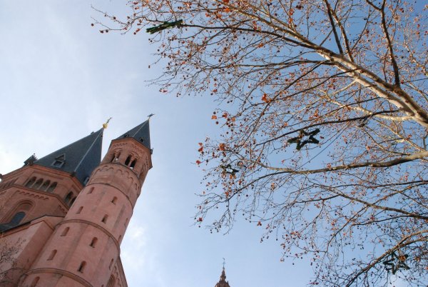>There can only be 2 explanations for this (seen above the market in Mainz, next to the Dom) a) It’s a new strain of mistletoe b) They were too bloody…
