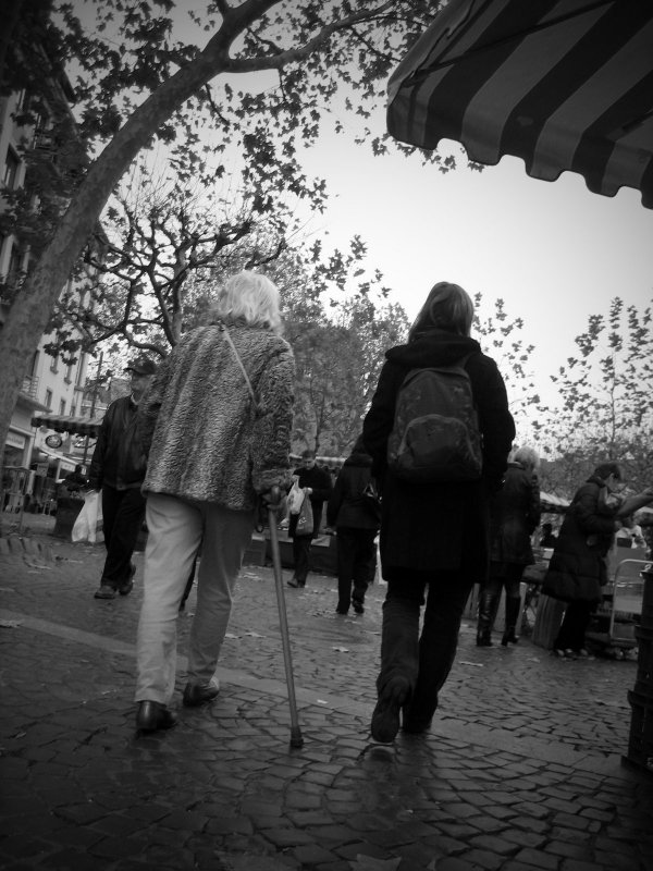 >Striding out at the Market. PS – it snowed a little bit today. Brrrrr.