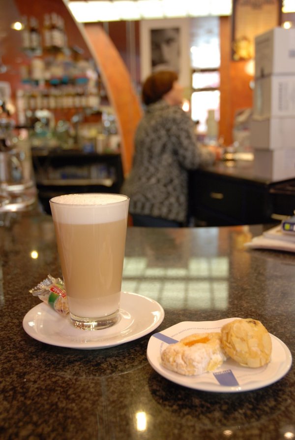 >And here’s another favourite. In the Augustinerstrasse behind the cathedral. Tables outside to enjoy the weather. Two Irish setters. Nice guy runs it. Aren’t we lucky people….