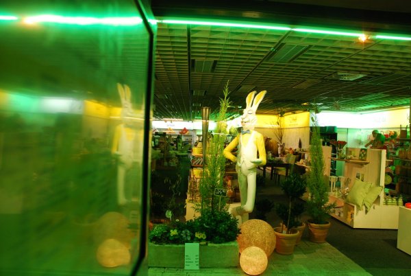 >I like the easter egg/hot cross bit of the occasion, but it’s the hokey decorations – here in the Kaufhof window display – that get me. This bloke looks positively…